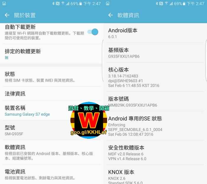▲確認型號為SM-G935F(Samsung Galaxy S7 Edge),系統為Android 6.0.1。