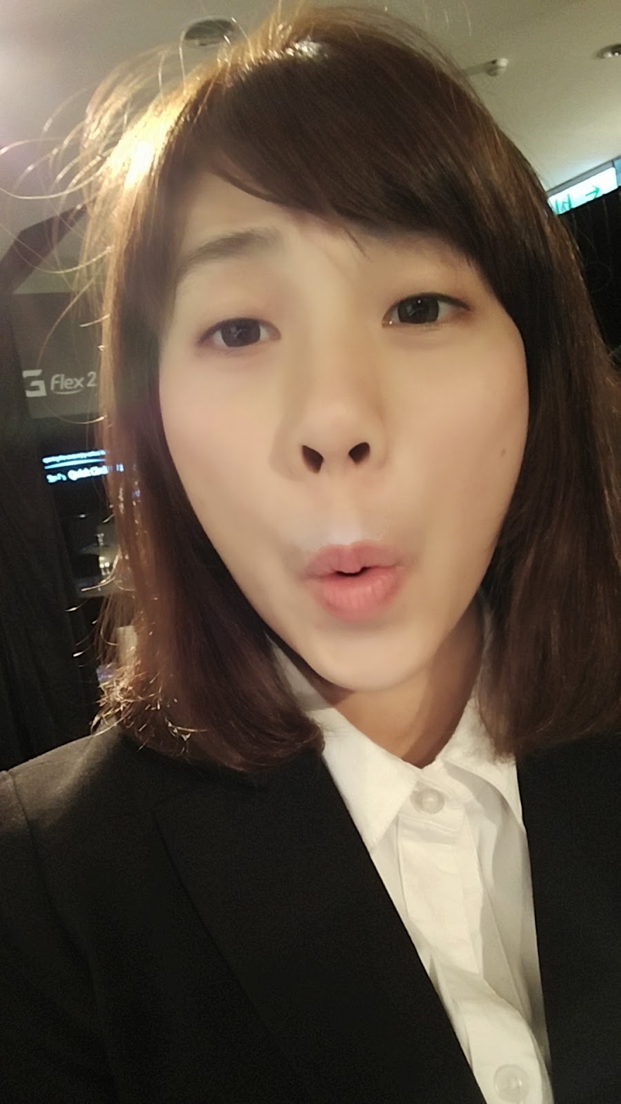 ▼ LG 接待小姐將美顏功能開到最高所拍下的搞笑照,是不是覺得肌膚變的吹彈可破呢!