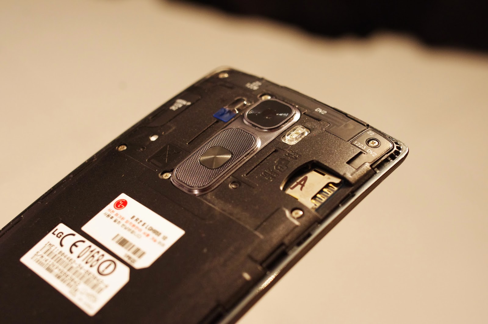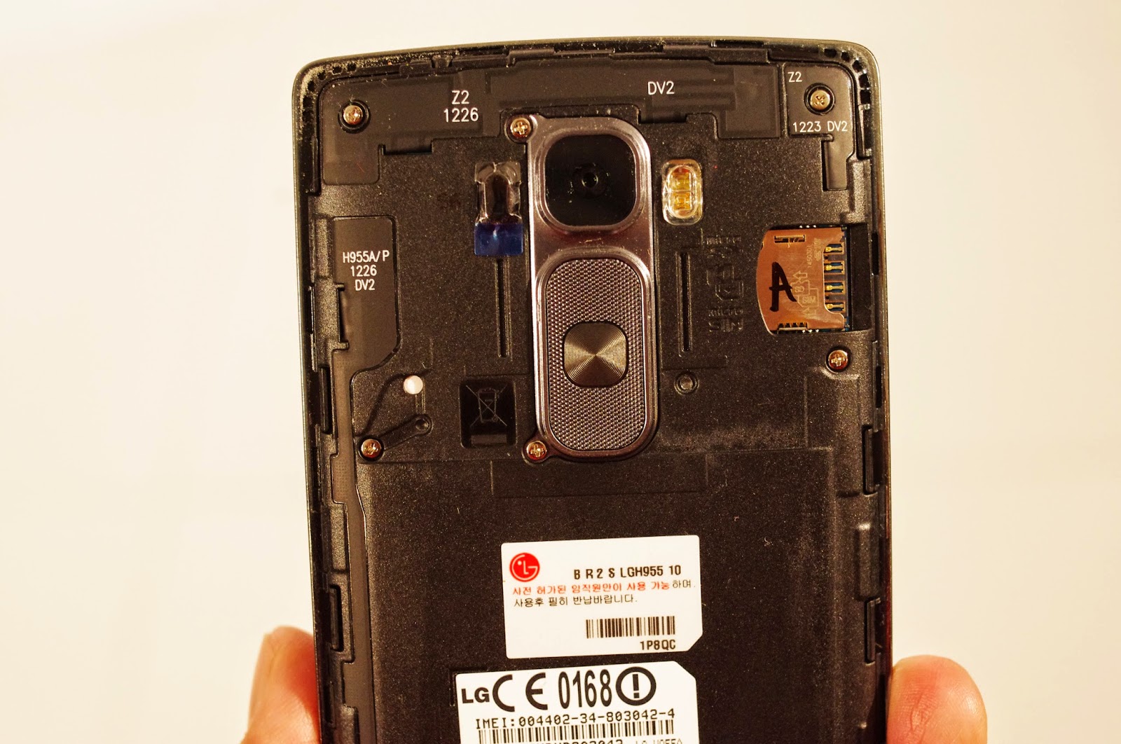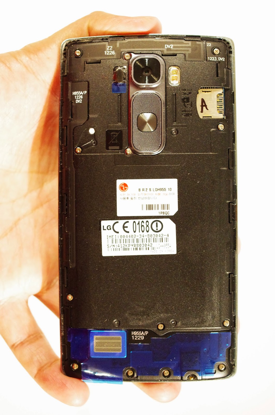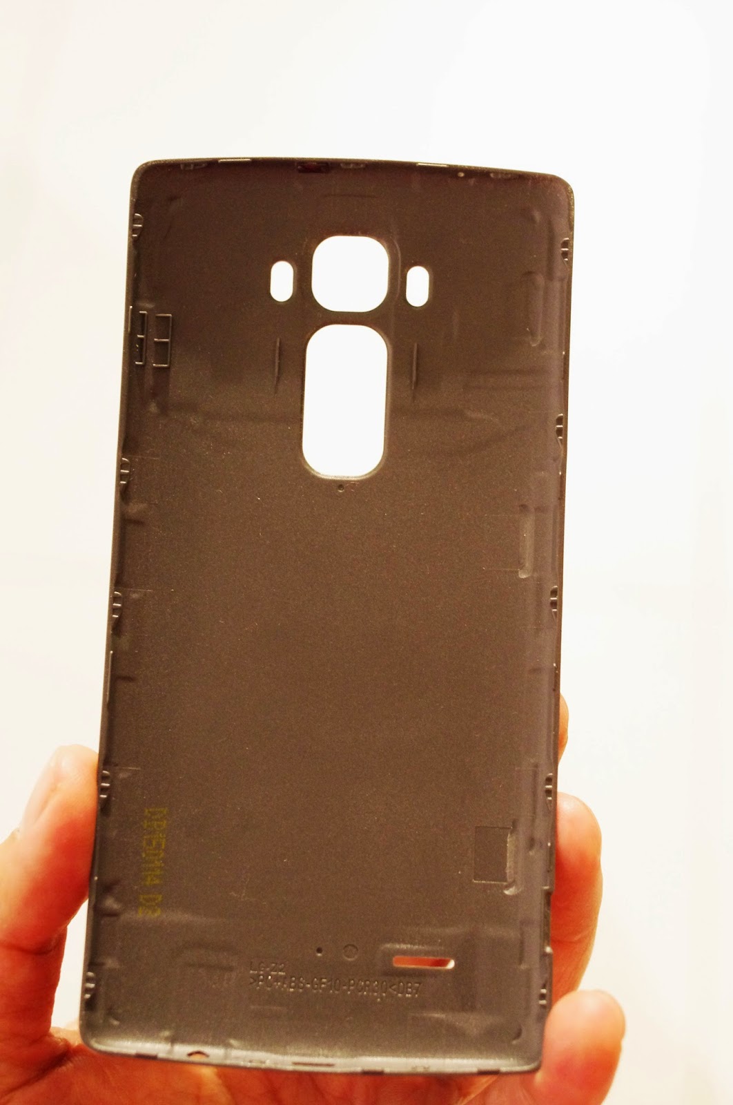 ▼ 可以看的到打開背蓋後,LG G Flex2 手機上半部只有在右方有 microSD 卡和 micro Sim 卡的插槽和中間的 Rear Key。