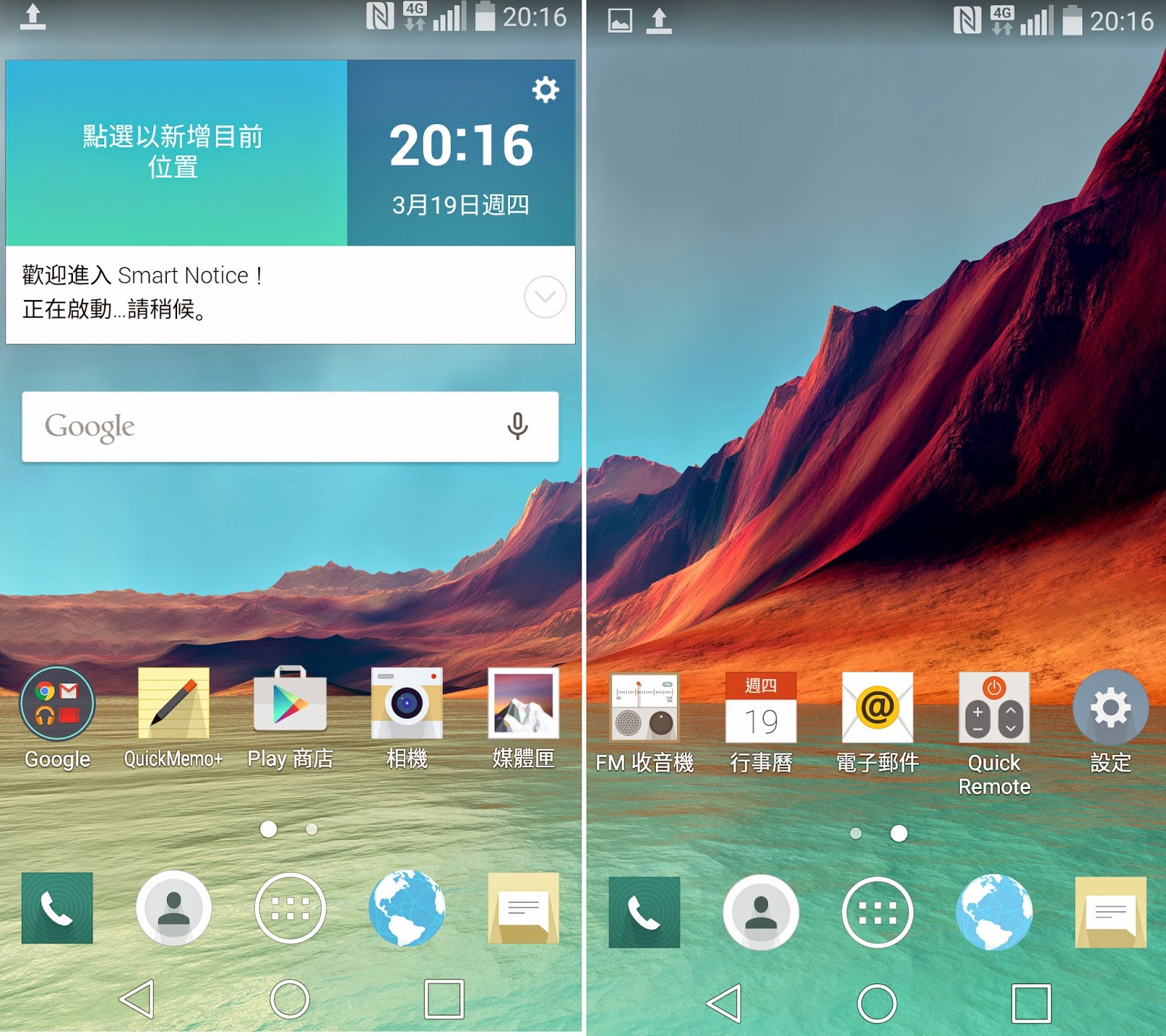 基本上 LG G Flex2 是原生的 Andriod 5.0 介面,就讓我們來看一下 LG G Flex2 的介面吧