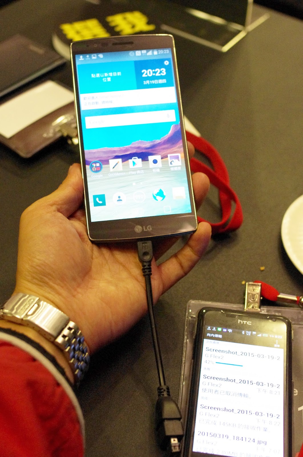 ▼ LG G Flex2 支援快速充電功能,充電40min可以衝 50%電量,這是非常實用的功能,只要有快速充電就不用擔心要充電充很久才可以用的問題,同時 LG G Flex2 支援 OTG ,我現在現場有試過,是支援 Fat32 格式外接隨身碟的,不過同時也發現 LG G Flex2 的 OTG 可能並不支援外接 USB 耳機,這還有待進一步的測試才能完全確認,不過光可以支援外接隨身碟裝置就可以讓影片和照片容量沒有煩惱了。