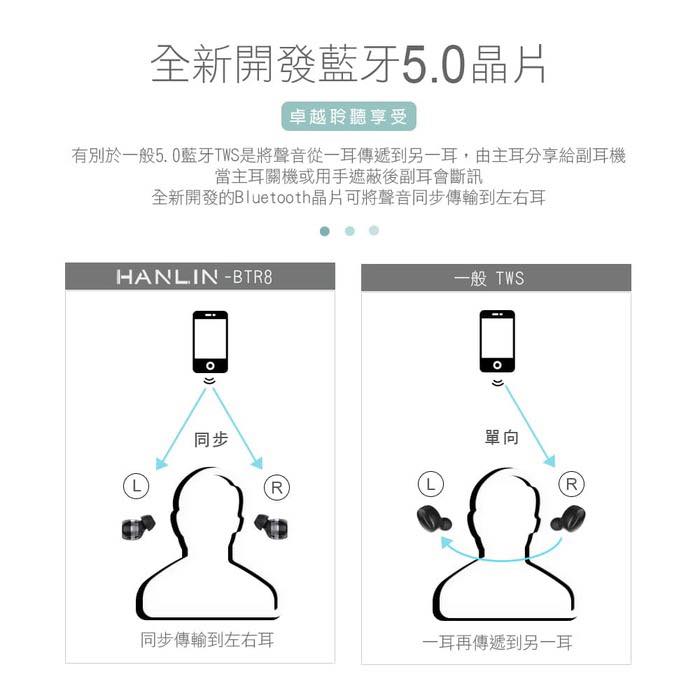 HANLIN BTR8 真無線藍芽耳機,其主要採用TWS PLUS的技術,兩耳可以單獨直接跟