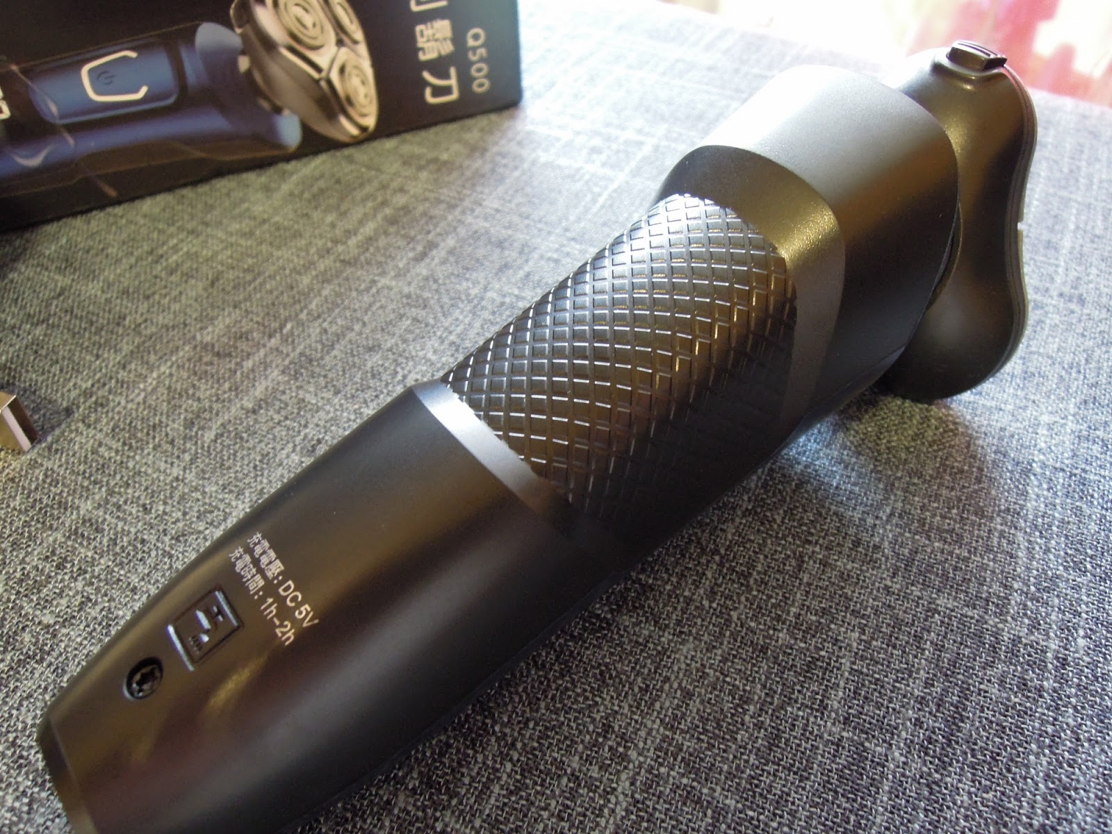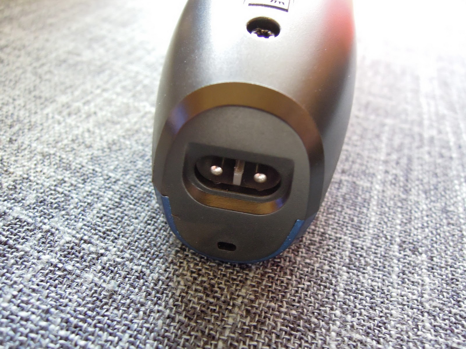 充電孔下方有個小洞, 這是排水用的....不用擔心水跑到刮鬍刀裡面.